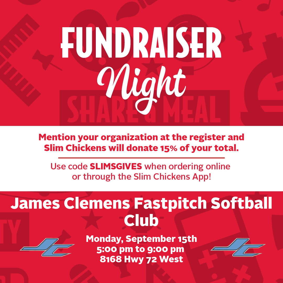 Support your JC Softball team at Fundraiser Night at Clift Farms Slim Chickens on Monday, September 15, 5:00pm to 9:00pm.